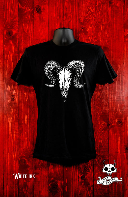Dark Ram Skull-Unisex Jersey Tee-Dark Apparel-Gothic Gifts-Illustration-Ram T-shirt-Animal Skull-Silkscreen art-Women's-Men's-Occult Apparel
