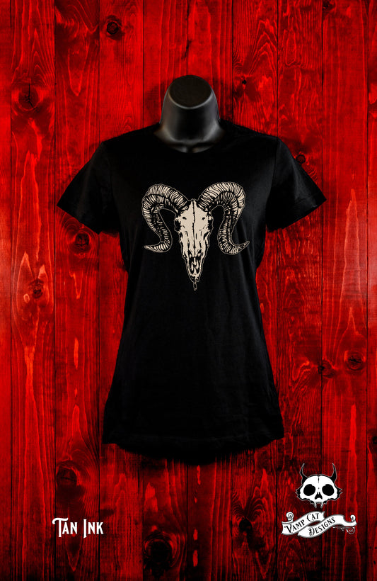 Dark Ram Skull-Women's Tee-Occult Apparel-Dark Illustration-Ram Skull-Silkscreen Tee-Witchy Gifts-Gifts For Her-Animal Skulls-Gothic Shirt