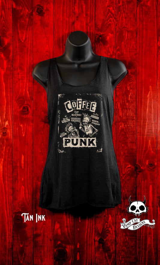 Coffee Punk Tank Top-Poster Style-Two color Options-Punk Rock Tee-Coffee Lovers Shirt-Band Puns Tee-Coffee Puns-Skeletons And Coffee Shirt