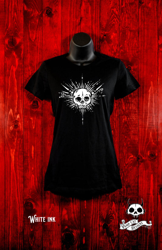 Cryptic Skull-Women's Tee-Occult Art-Dark Apparel-Witchy Skull-Gothic Tee-Cryptic Art Tee-Skull Shirt-Skull Lovers-Witchy Shirt