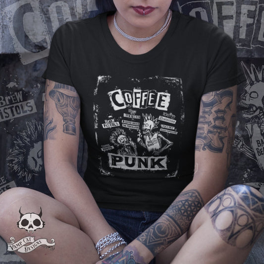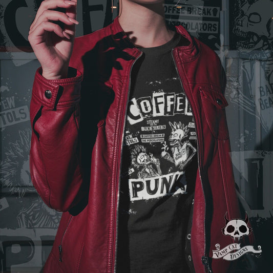 Coffee Punk T-Shirt Poster Style-Punk Bands Women's Shirt-Coffee Lovers-Punk Lovers-Graphic Tee-Coffee Puns-Band Puns-Punk Tee-Graphic Tee