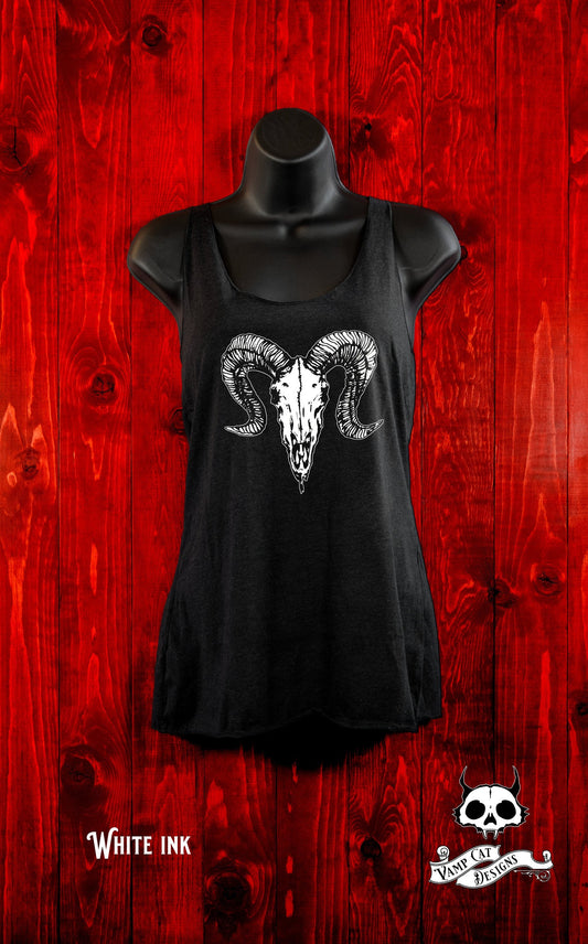 Dark Ram Skull-Tank Top-Gifts For Her-Dark Apparel-Illustration- Art T-shirt-Animal Skull-Ram Skull-Silkscreen art-Occult Gifts-Dark Fashion