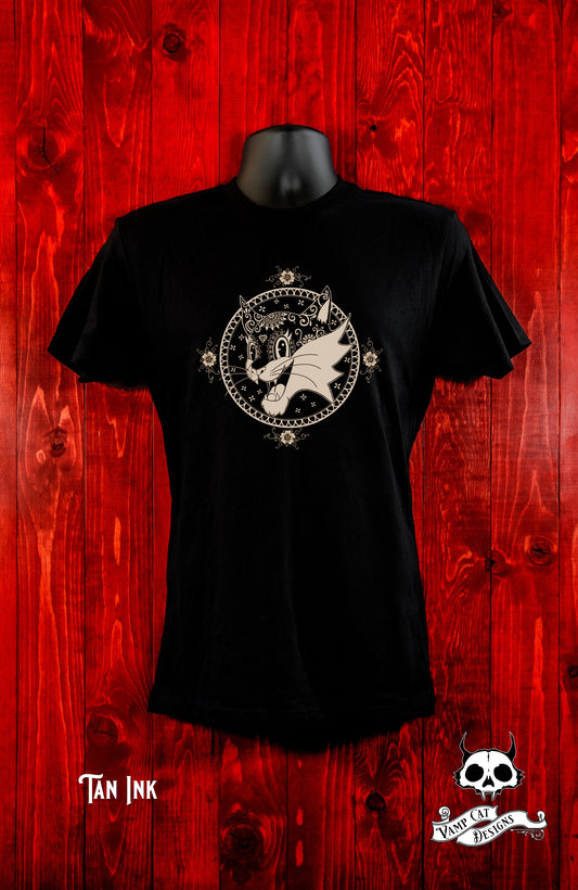 Floral Vintage Cat-T-Shirt-Unisex-Dia De Los Muertos-Men and Women's Tee-Cat Apparel-Day of The Dead-Cat Art-Vintage Style Cat-Graphic Art
