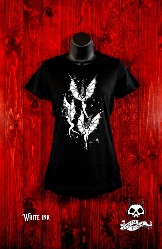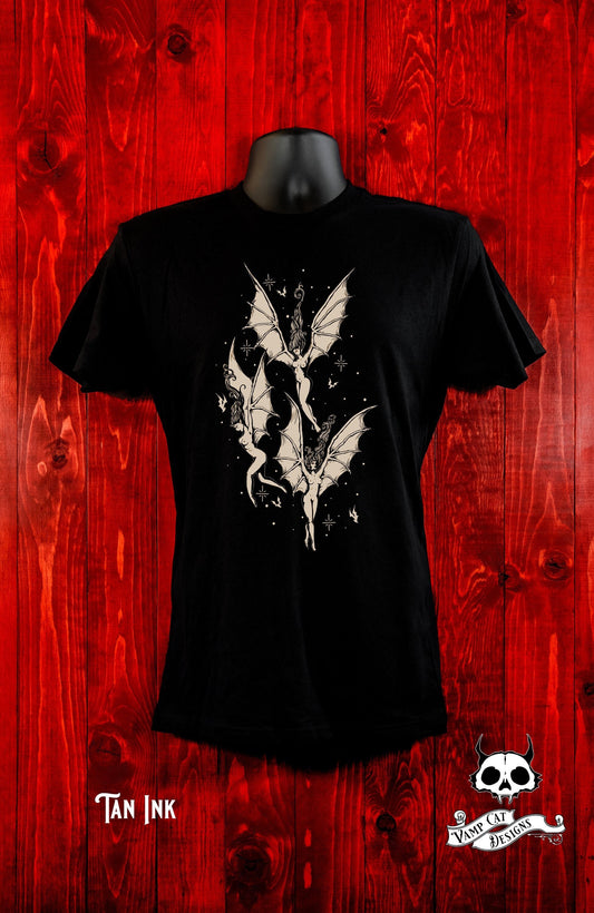 Flight Of The Succubus-Women's Tee-Folklore Art-Dark Apparel-Witchy Tee-Women's Top-Gothic Tee-Female Demons-Succubus Art Tee
