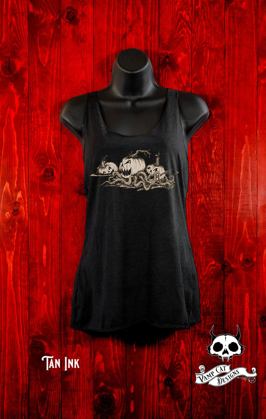 Jack O' Lanterns Alive-Tank Top-Halloween Illustration-Halloween Art-Flowy Tank-Jack O' Lanterns Tee-Scary Pumpkin Season-Racer Back Tee