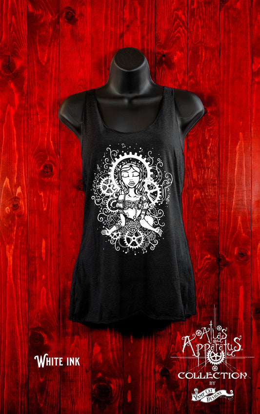 Music Punk-Tank Top-Racer Back-Steampunk Apparel-Illustration-Art T-shirt-Music-Steampunk Art-Music Lover-Music Shirt-Flowy Tank-Women's Top