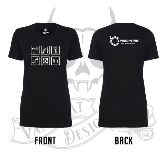 Portal Shirt Apurrrture Laboratories Women's T-Shirt-Portal Game Fan Art-Cat Lovers-Graphic Art Tees-Gamer Shirt-Soft Print-Cat Art Shirt