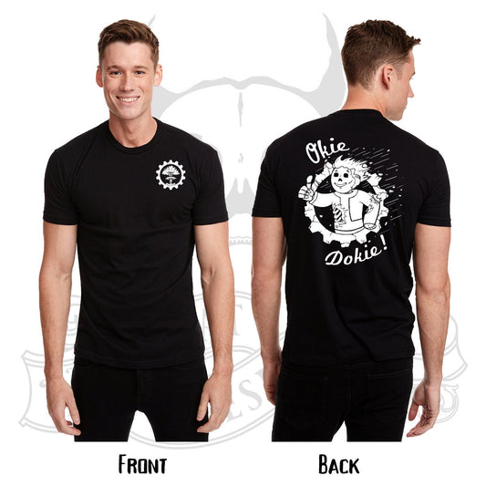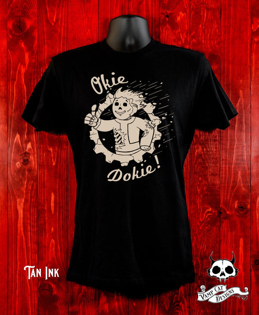 Okie Dokie Shirt-Unisex Tee-Gamer Fan Art-Fallout Inspired Art-Front And Back Designs-Post Apocalyptical T-shirt-Dark Humor-Video Game Art