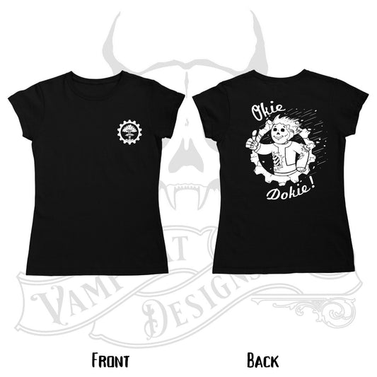 Okie Dokie Shirt-Women's Tee-Gamer Fan Art- Fall Out Inspired Art-Post Apocalyptic T-shirt-Dark Humor-Video Game Art-Hand Drawn-Two Sided