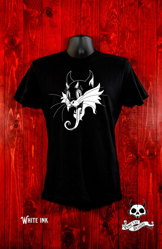 Mewcifer-Unisex Tee-Devil Cat-Dark Apparel-Vintage Style Cat Tee-Men and Women's Tee-Gothic Tee-Devil Cat Art-Cat Lovers