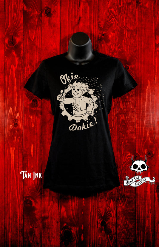 Okie Dokie Shirt-Women's Tee-Gamer Fan Art-Fall-Out Inspired Art-Post Apocalyptic T-shirt-Dark Humor-Video Game Art-Hand Drawn Design Shirt