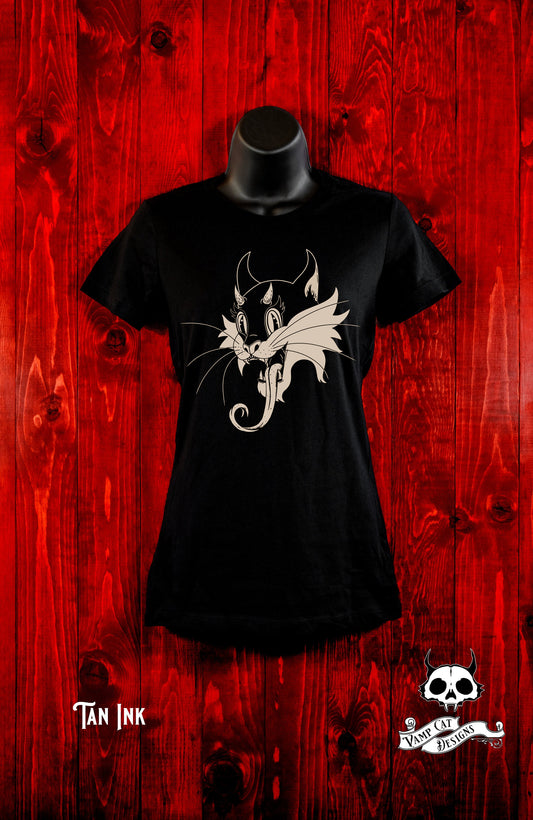 Mewcifer Women's Tee Devil Cat-Vintage Style-Dark Apparel-Cat Lovers-Gothic Tee-Cat Shirt-Devil Cat Art-Vintage Cat Art-Lucifer Shirt