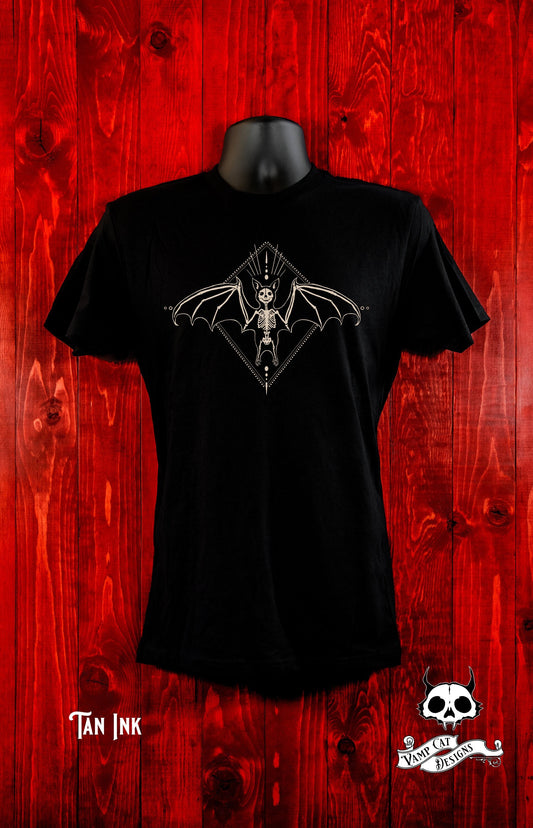 Skeleton Bat-T-Shirt-Gothic Clothing-Cryptic Art-Unisex Short Sleeve Tee-Skeleton Animals-Bats-Witchy Clothing-Graphic Tee-Winged Creatures