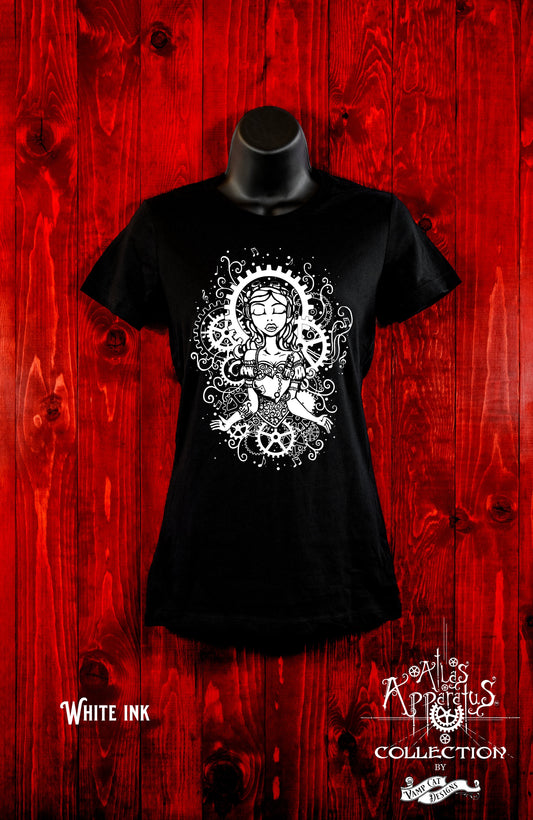 Music Punk Girl-Women's Tee-Steampunk Apparel-Illustration-Art T-shirt-Music-Steampunk Art-Music Lover- Music Shirt-Musician Gift