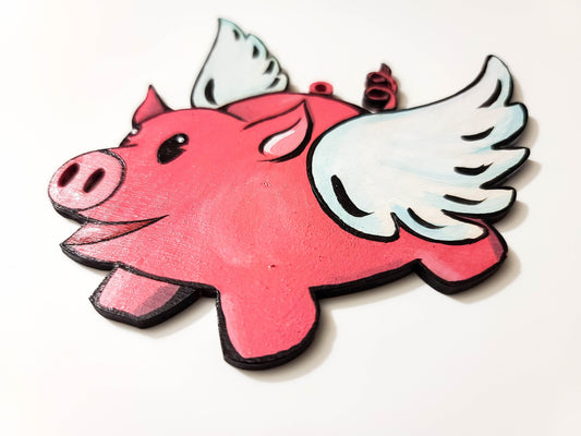 Retro Flying Pig-Hand Painted Wood Ornament-Rubberhose Style-Spooky Holiday Decor-Vintage Cartoon Style Ornament-Pig Ornament-Retro Decor