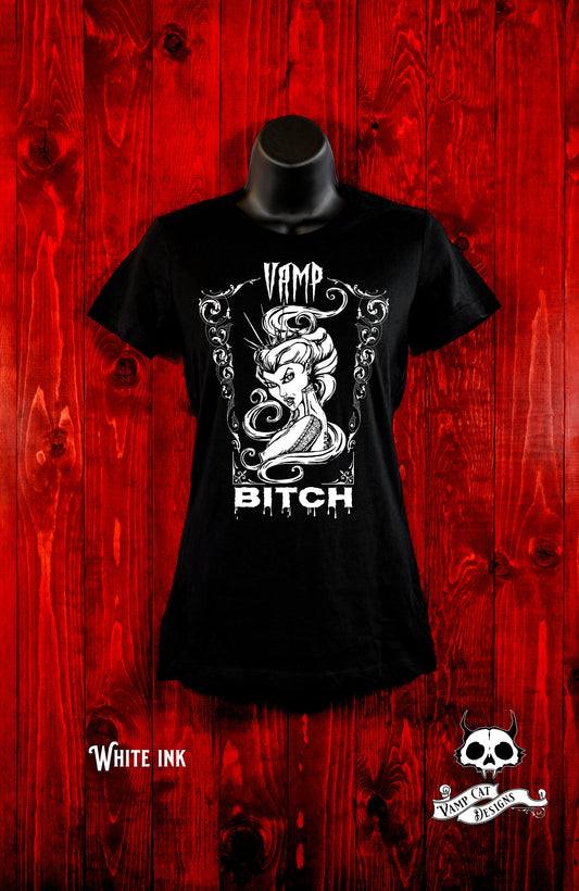 Vamp Bitch-T-Shirt-Women's-Horror Art-Dark Apparel-Vampire Women's Top-Gothic Tee-Vampire Art-Dark Humor T-Shirt-Attitude Tee-Vampire Gifts