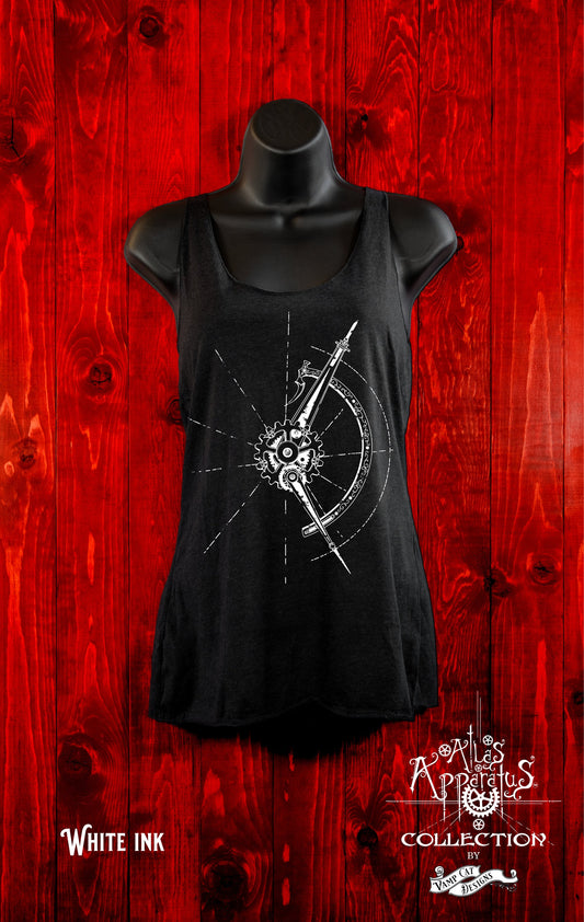 Victorian Compass-Tank Top-Racerback-Gifts For Her-Steampunk Apparel-Illustration-Art Compass-Mathematical Gift-Comfy Wear-Engineer Gifts