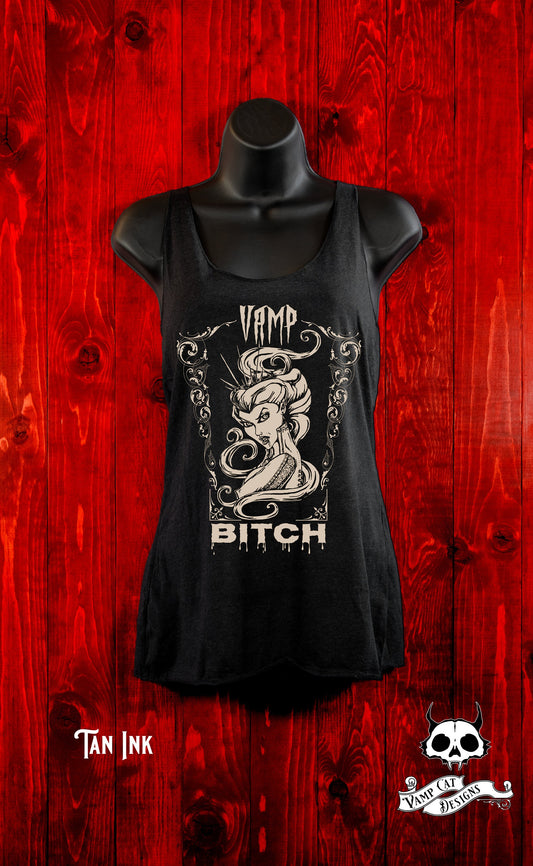 Vamp Bitch-Tank Top-Racer Back-Vampire Illustration-Witchy-Dark Apparel-Dark Humor-Women's Top-Gothic Art-Vampire Tank Top
