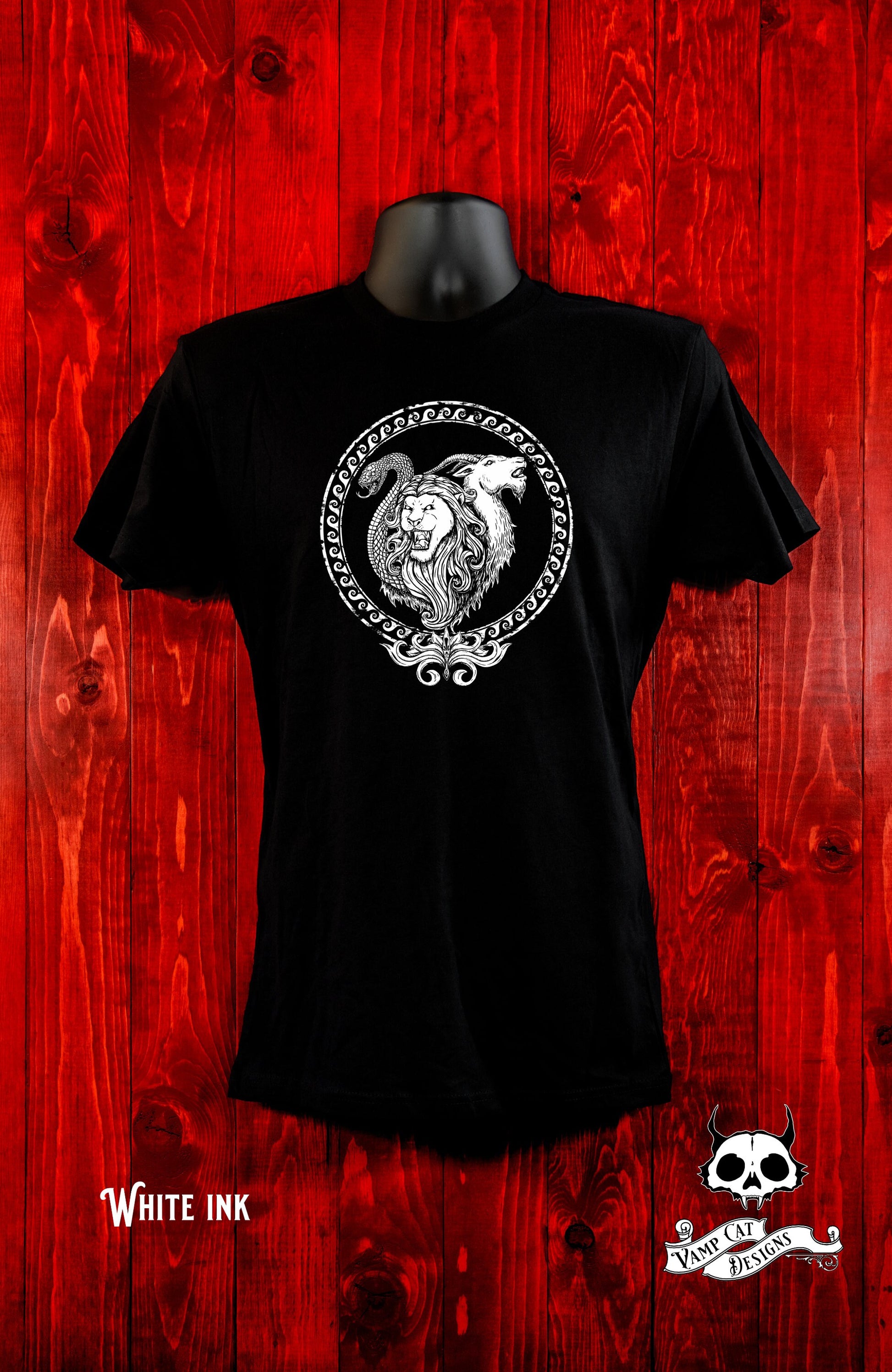 Original illustration of our "CHIMERA" from our Mythical creature series screen printed on high quality 100% cotton Unisex jersey with professional inks.