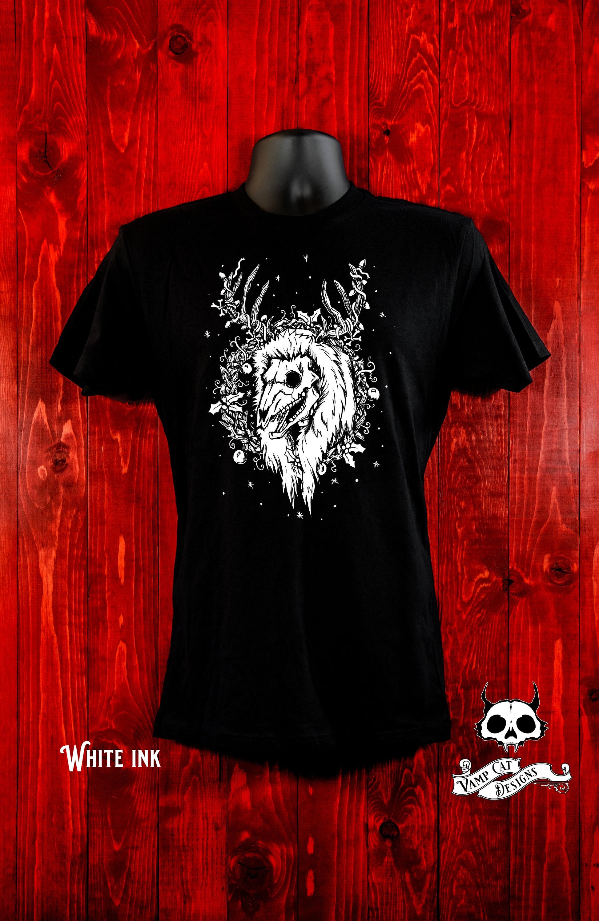 Yule Skull Deer T-shirt-Unisex-Witchy Christmas-Animal Skull Art-Christmas Shirt-Graphic Tee-Dark Holiday-Buck Skulls-Original Illustration